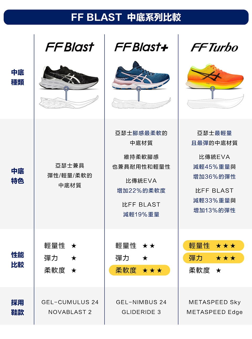 另一股能量,就是 FF BLAST PLUS ECO 環保發泡材質,承襲前代首度啟用的 FF BLAST PLUS 科技,GEL-NIMBUS 25 除了落實環保行動,用量更一口氣增幅 20% 之多,連帶中底厚度相比 24 代也拉升,男款的後跟、前掌高度從 26/16mm 變成 30/22mm,女款則是 28/15mm 增加到 29/21mm,用厚底召喚甜蜜緩衝,承托腳掌給予軟彈保護,並透過寬度賦予跑動間的穩定度。