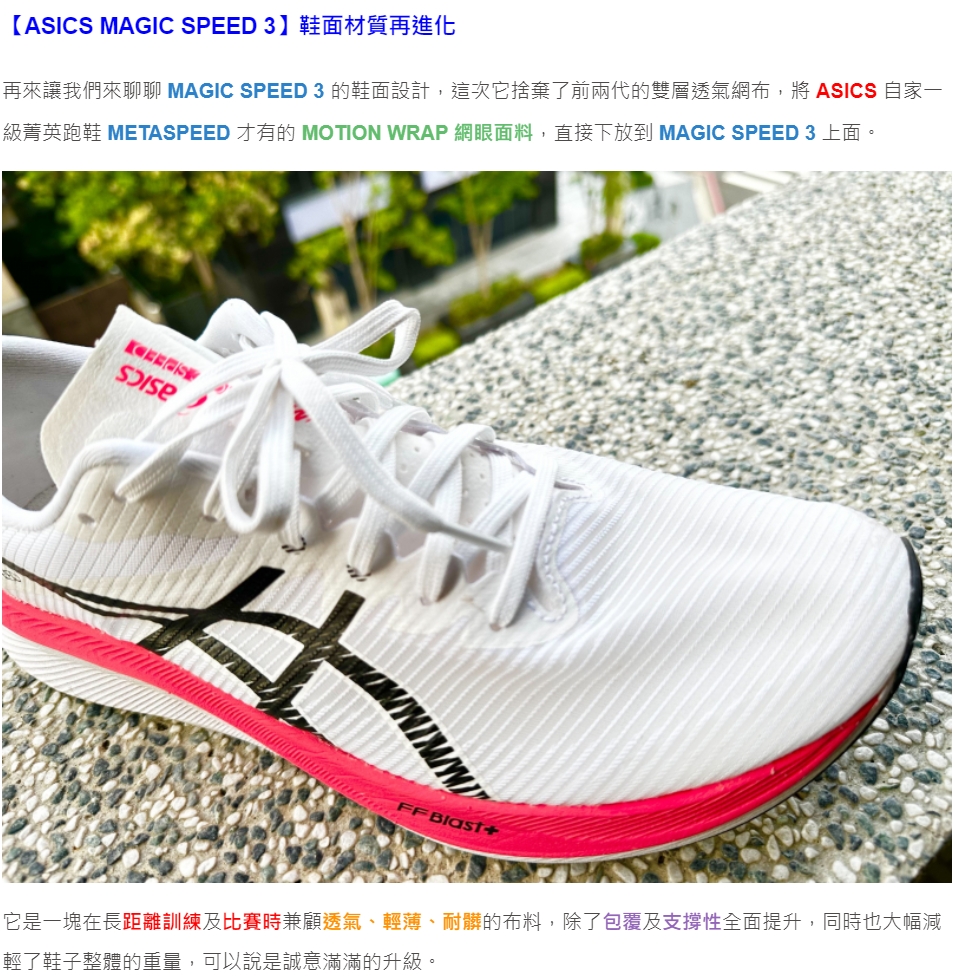 【ASICS MAGIC SPEED 3「厚底中高階跑鞋」-- 第二對--HK$400】兩對僅需-HK$850